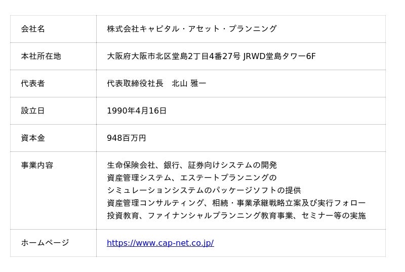株式会社キャピタル・アセット・プランニングは、生命保険会社・証券会社・銀行などの金融機関向けに、生命保険販売システムや資産管理システム等を提供しています。