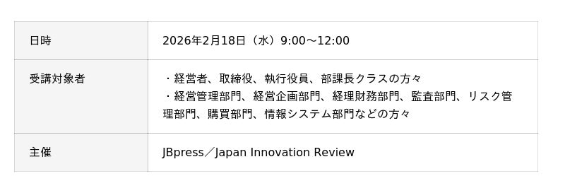 アバントグループでグループ経営管理・連結会計・事業管理のソリューションを提供する株式会社アバント(本社:東京都港区、代表取締役社長 執行役員 CEO:岡部 貴弘、以下 アバント)は、2026年2月18日に開催されるJBpress/Japan Innovation Review主催「変化に強い経営管理を実現する“ローリングフォーキャスト”」にて講演いたします。