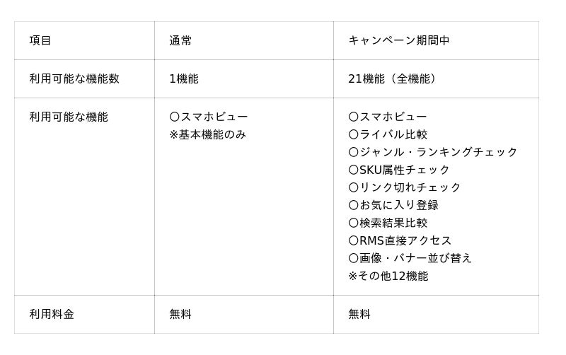 本キャンペーンは、これらの機能が無料で利用できるものではありません。