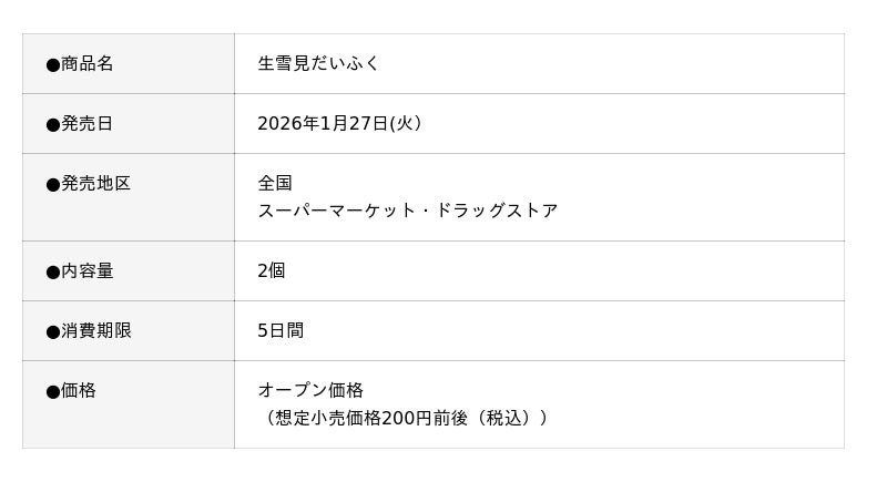 昨年も好評につき即完売!まるで“できたて”!?ふわふわクリーム大福が今年も帰ってきた!『生雪見だいふく』2026年1月27日(火)より全国のスーパー・ドラッグストアにて発売