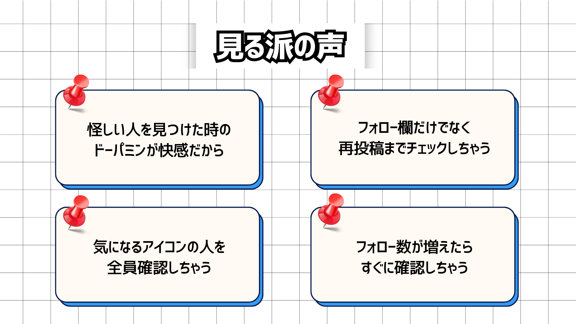 - 「フォロー欄だけでなく、再投稿(リポスト)欄まで細かくチェックして人間関係をあぶり出す」- 「気になるアイコンの女性を何日かかけて特定し、最終的にフォロー中を全員把握する」- 「ドーパミンが快感」という、一種のゲーム感覚で情報を収集する心理も。