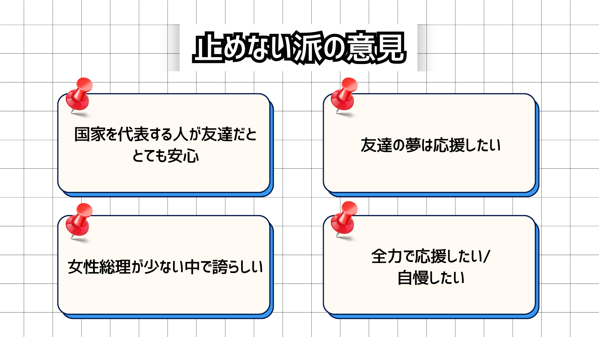 - 「友達の夢は応援したい」「国家を支える人が友達だと自慢できる」