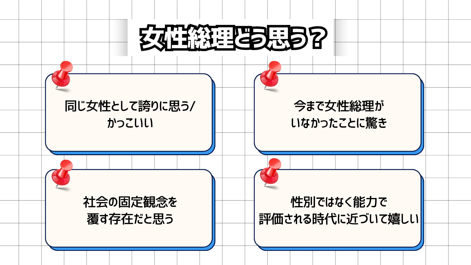 「女性総理」というテーマに対し、彼女たちに偏見は一切ありません。「誇らしい」「今までいなかったのが驚き」と前向きな声が主流です。しかし、「友達が総理になるといったら?」という問いには、生々しい友情の本音が漏れました。