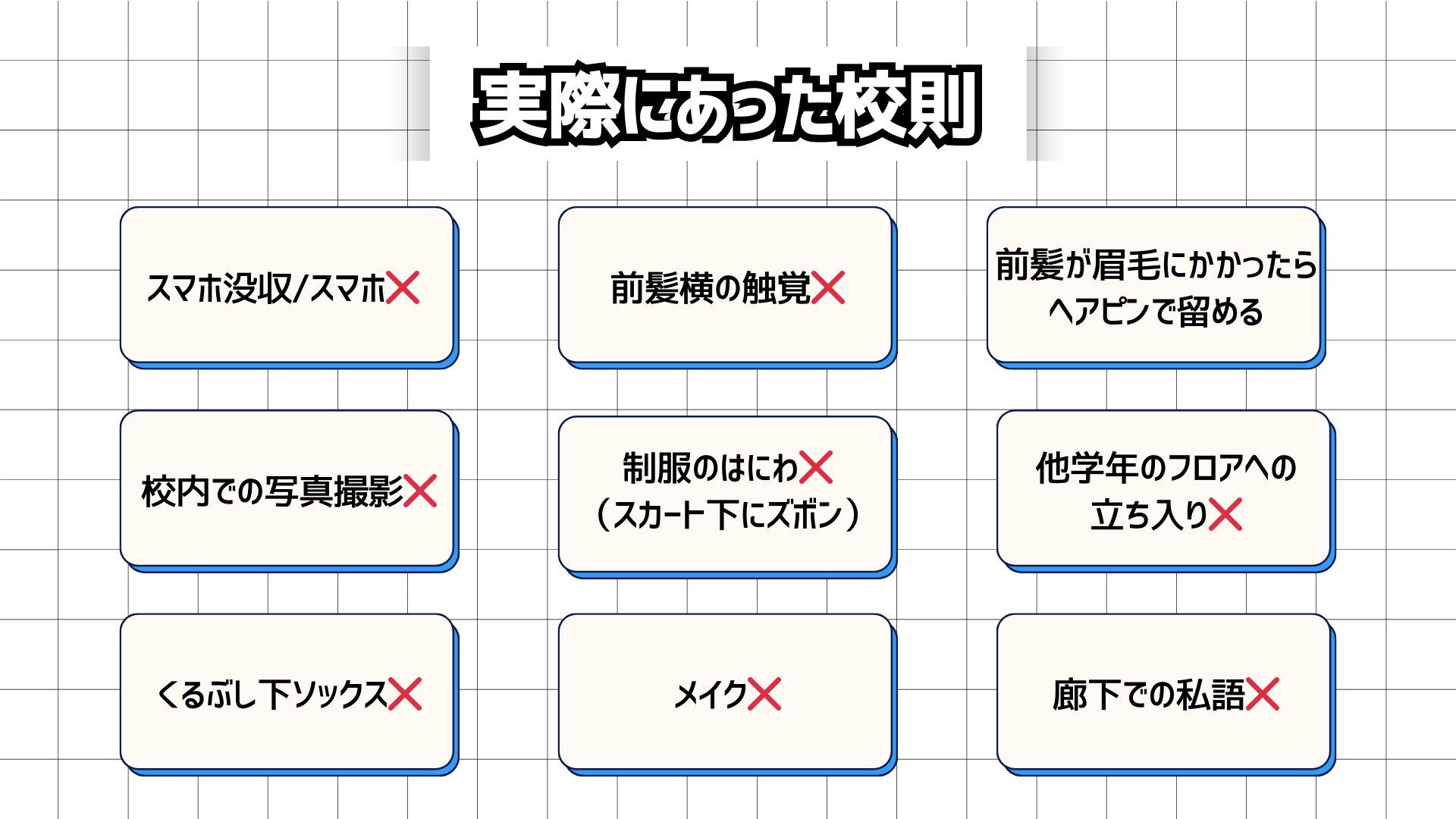 現場で挙がったのは「前髪が眉にかかったらピンで留める」「他学年のフロア立ち入り禁止」といった、今なお残る厳しい校則の数々。彼女たちが訴えたのは「何でも自由にしろ」ということではなく、「理由の説明」でした。