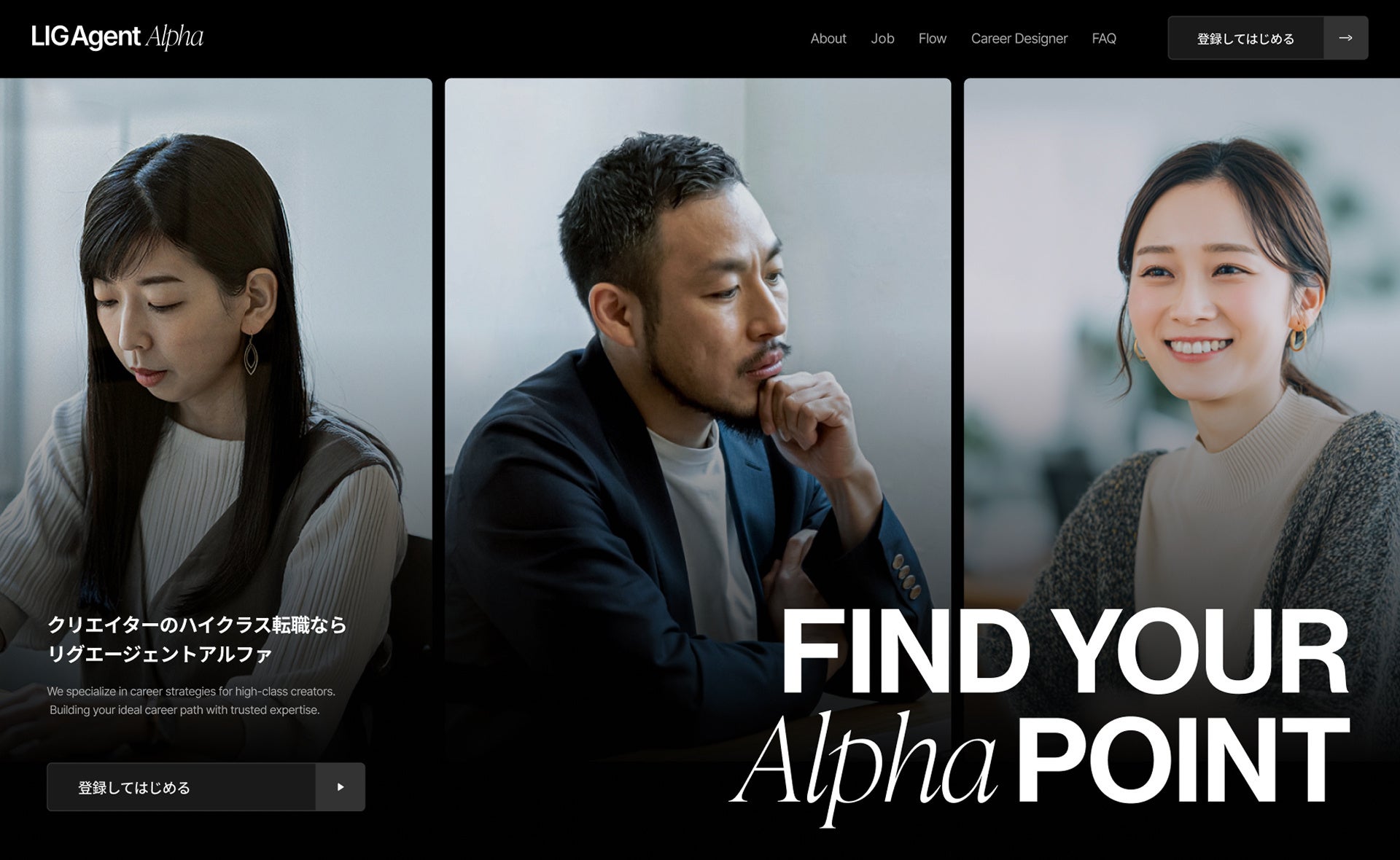株式会社LIG(本社:東京都台東区、代表取締役社長:大山 智弘)は、2026年1月、経験を積んだクリエイターに特化したハイクラス転職支援ブランド「LIG Agent α(リグエージェント アルファ)」をリリースしました。スキルや年収といった表層的な条件だけでなく、企業との対話を通じて組織の成熟度や意思決定のスピードなど「環境との相性」を重視し、プロフェッショナルが本当に力を発揮できる環境へのマッチングを実現します。