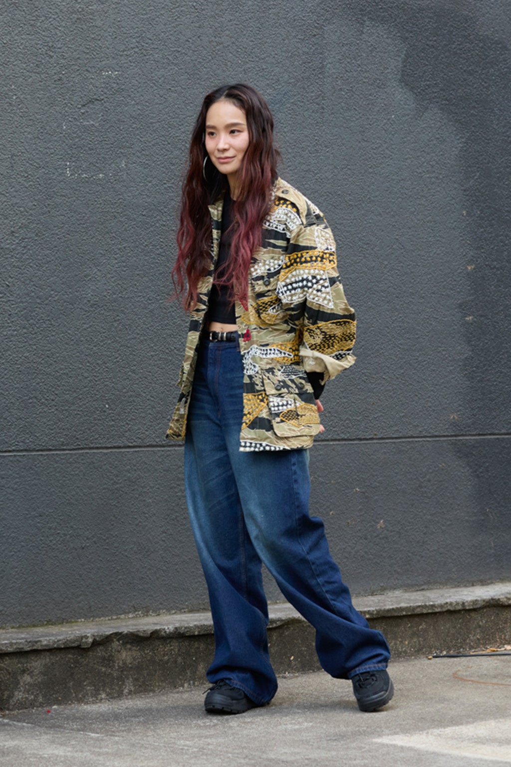 本作では、そのなかでも象徴的なベトナム地図をモチーフに、カラフルな刺繍で表現。 ミリタリーウェアとスーベニアカルチャーが交差する背景を、シャツという日常的なアイテムに落とし込むことで、主張がありながらも取り入れやすい一着に仕上げています。 全体はゆとりのあるサイズ感で、甘さを抑えたデザイン。ジェンダーを問わず、男性にも自然に取り入れていただけます。