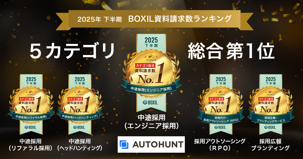 AUTOHUNT、「2025年下半期 BOXIL資料請求数ランキング」 中途採用(エンジニア採用)カテゴリ総合1位に選出