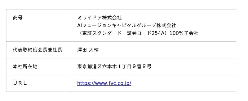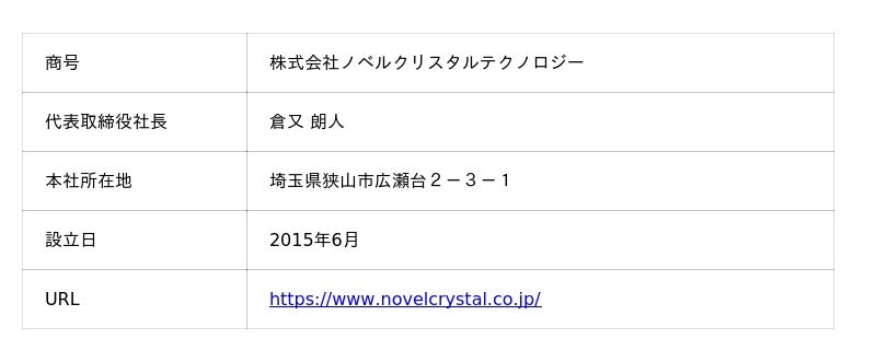 ミライドア株式会社(本社:東京都港区、代表取締役会長兼社長:澤田 大輔、以下「ミライドア」)は、埼玉県・株式会社日本政策金融公庫(以下「日本政策金融公庫」)と連携し、埼玉県内の地域金融機関等と共同で設立した埼玉県渋沢MIXイノベーション創出支援投資事業有限責任組合(以下「埼玉県渋沢MIXイノベーション創出支援ファンド」)より、β型酸化ガリウム基板・エピウエハの開発・製造・販売を行う株式会社ノベルクリスタルテクノロジー(本社:埼玉県狭山市、代表取締役社長:倉又 朗人、以下「ノベルクリスタルテクノロジー」)に投資を実行しましたことをお知らせいたします。