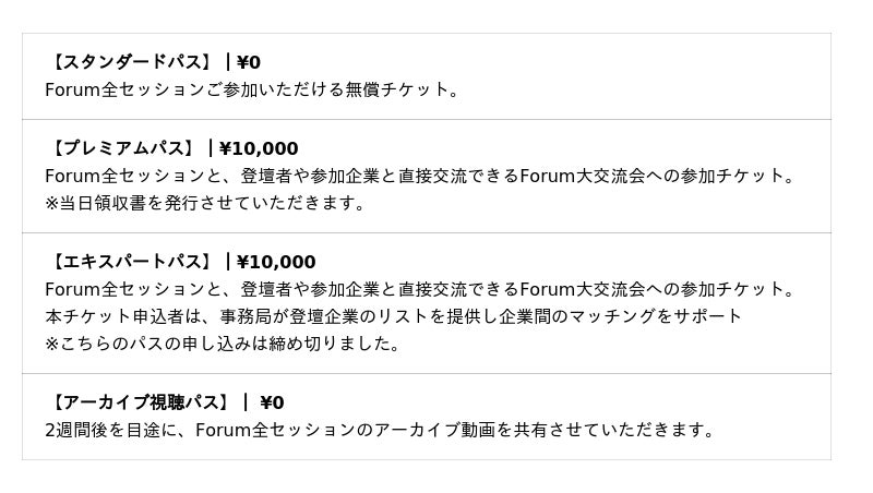 ※Forum大交流会は、プレミアム/エキスパートチケットの申込者限定