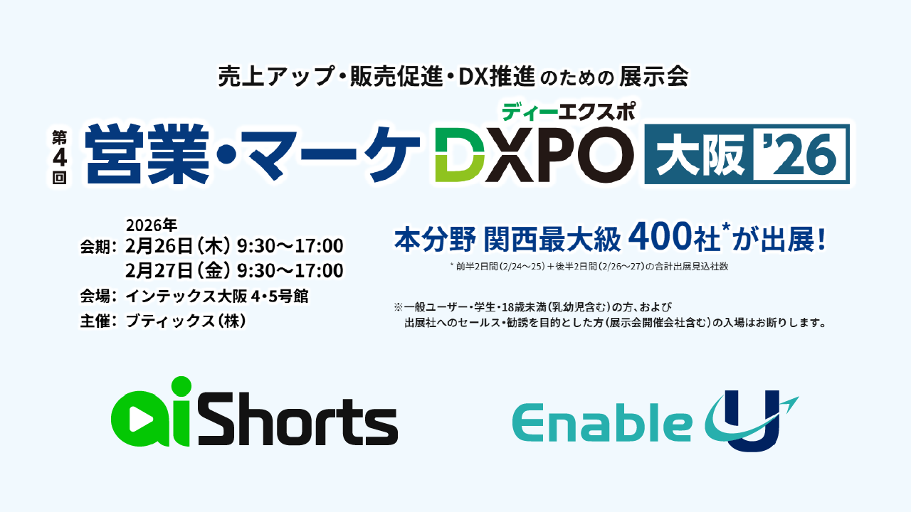 【AI Shorts・Enable-U】営業DXの最新ソリューションを展示「営業・マーケDXPO大阪'26」に出展