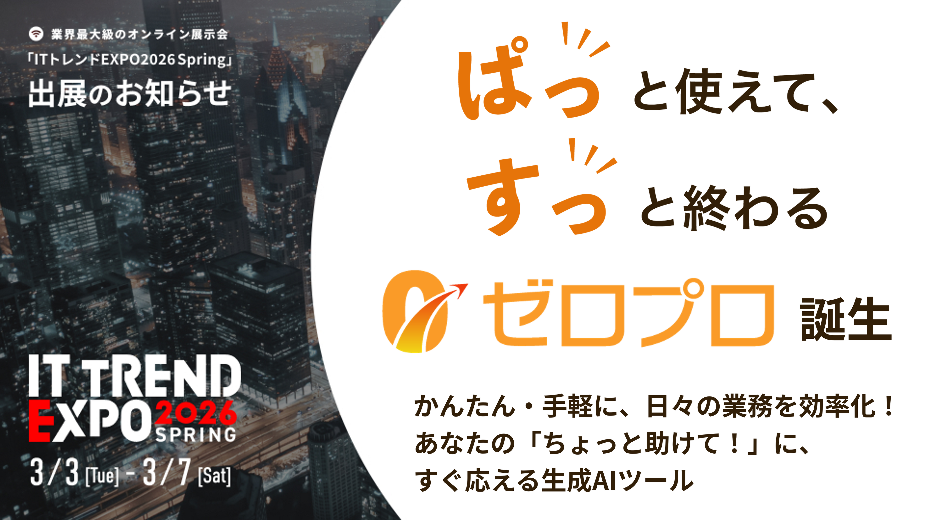 業界最大級のオンライン展示会「ITトレンド EXPO 2026 Spring」へISTソフトウェア出展のお知らせ ~”ぱっ”と使えて、“すっ”と終わる生成AIツール『ゼロプロ』をご紹介します~