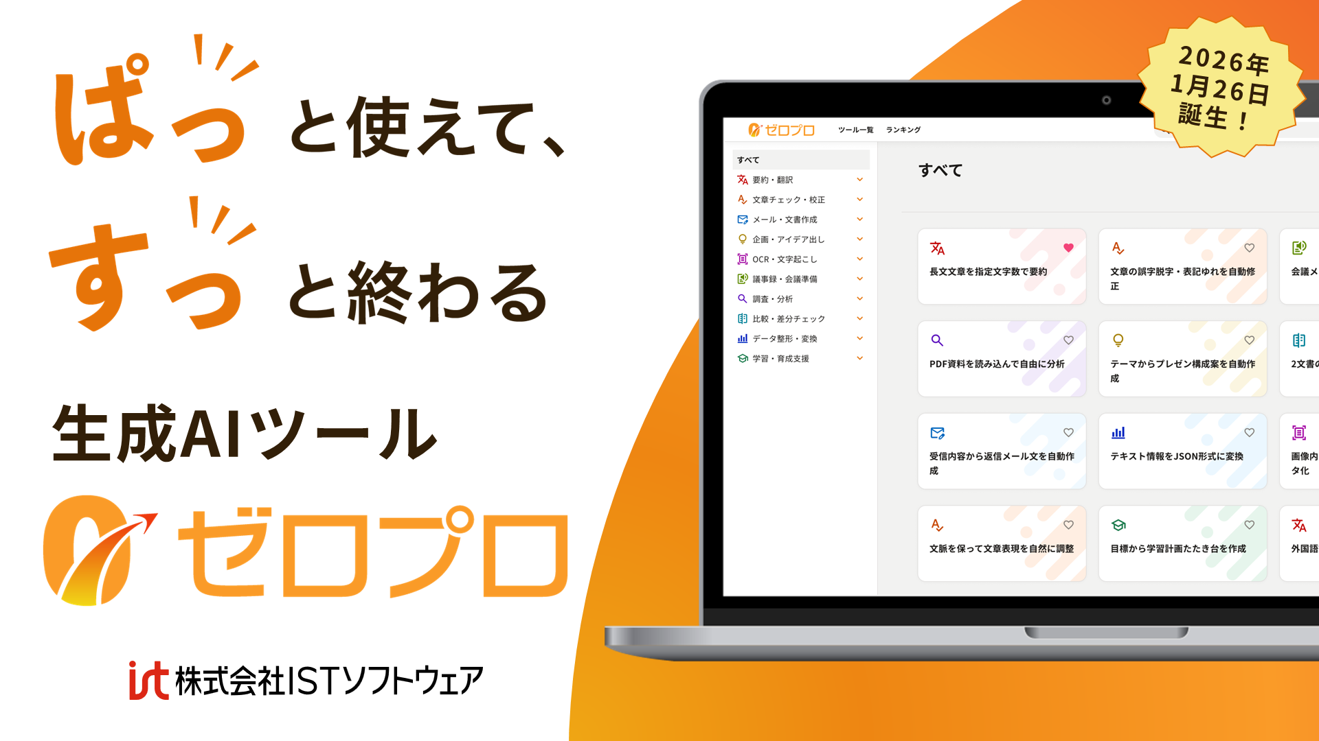 株式会社ISTソフトウェア、オンライン展示会「ITトレンドEXPO 2026 Spring」に“プロンプト・チャット不要”の生成AIツール『ゼロプロ』を出展