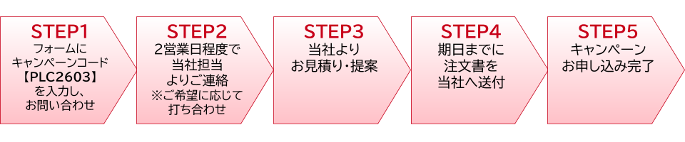お問い合わせフォームのキャンペーンコード欄に【PLC2603】と入力し、お問い合わせください。