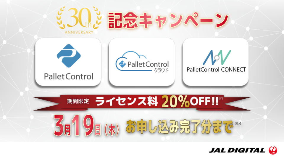 ~JALデジタル、「PalletControl」誕生30周年を記念し、ライセンス料が20%OFFになるプレキャンペーンを期間限定で実施~