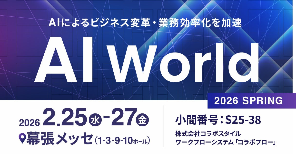 「ワークスタイルの未来を切り拓く」を理念に掲げる株式会社コラボスタイル(所在地:愛知県名古屋市、代表取締役社長 兼 CEO:松本 洋介、以下 コラボスタイル)は、2026年2月25日(水)~27日(金)に幕張メッセで開催される「AI World 2026 春 東京」に出展することをお知らせします。