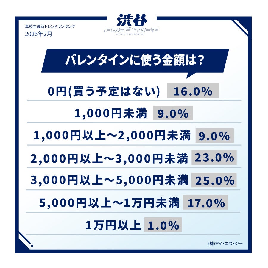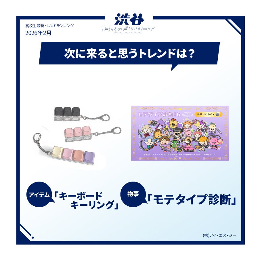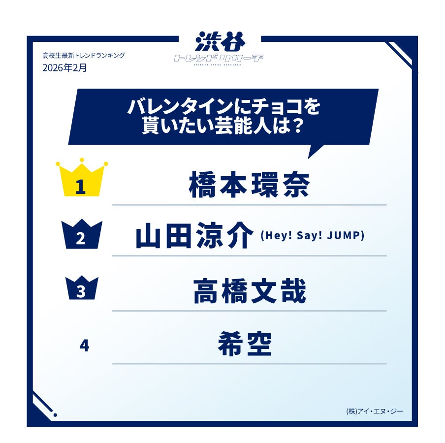 【イマドキ高校生の最新!バレンタイン調査】バレンタインにチョコをもらいたい芸能人TOP10を発表!今月のネクストトレンド「モテタイプ診断」とは…?高校生の最新トレンド2026年冬!渋谷トレンドリサーチ
