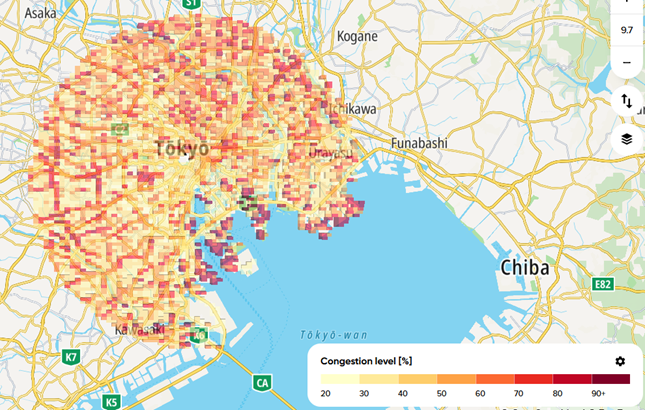 Area Analytics ツール画面 (渋滞レベル%) イメージ