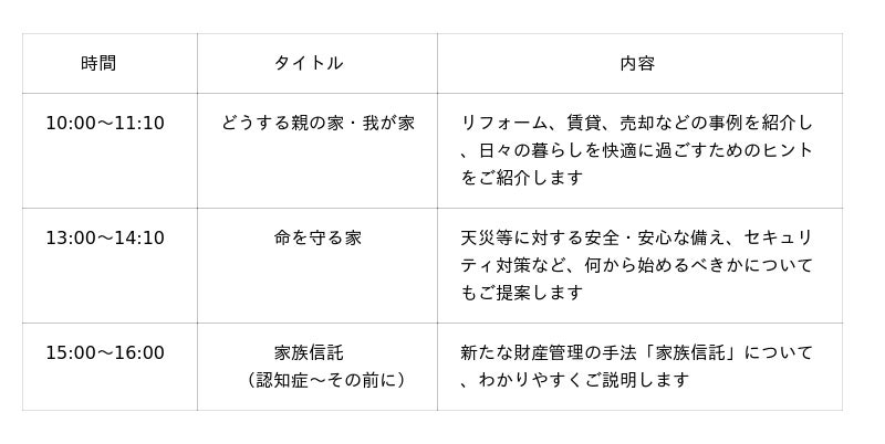 1 名 称 「住まいと暮らしを考える!」セミナー&個別相談会