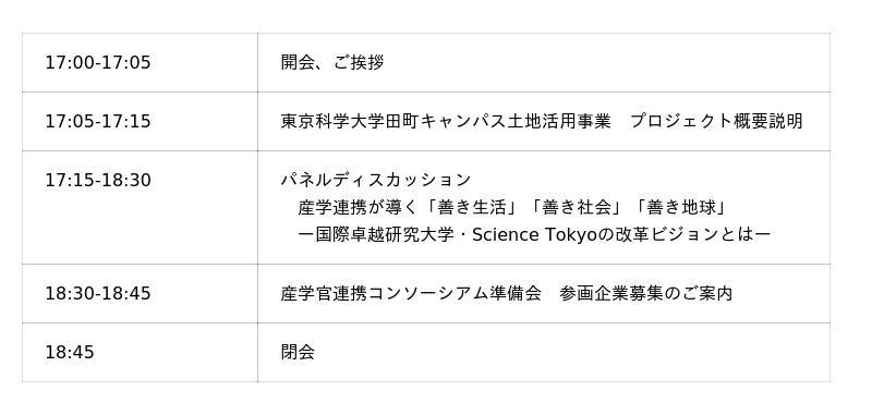 主催 :東京科学大学田町キャンパス土地活用事業 産学官連携機能準備会