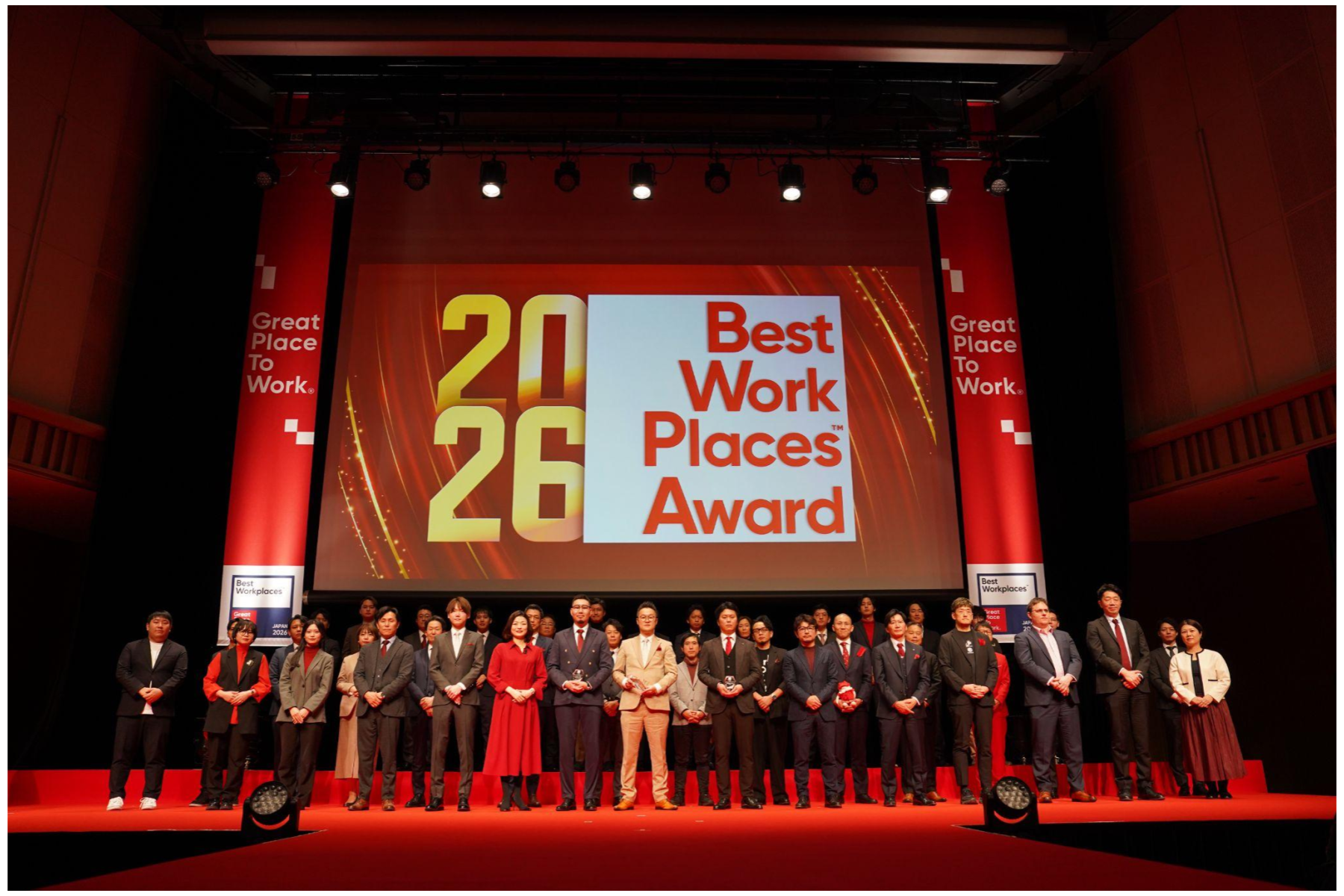 2026年2月6日(金)、品川インターシティホールにて開催された「Best Workplaces Award 2026 ~2026年版 日本における「働きがいのある会社」~ベスト100 表彰式」では取締役 小林武蔵が登壇し、表彰を受けました。