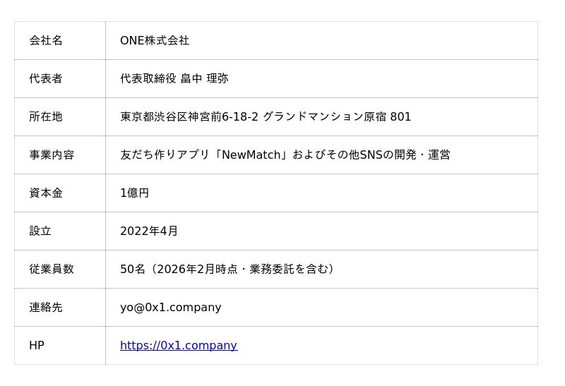 「友だちから始まる新しい出会い」をテーマにしたSNS『NewMatch(ニューマッチ)』を運営するONE株式会社(本社:東京都渋谷区、代表取締役:畠中理弥、以下:ONE)は、渋谷・道玄坂エリアにてNewMatch初となる全長10m超の大型屋外広告(OOHビジュアル)を掲出したことをお知らせいたします。NewMatchは2025年1月のリリース以降、SNSを起点としたユーザー獲得により利用者数を拡大し、現在は18~24歳の若年層を中心に支持を広げています。本施策は、同世代の若者が集まる渋谷・道玄坂エリアにおいて屋外広告を展開することで、サービスのブランド認知向上とターゲット層へのリーチ強化を図ることを目的としています。
