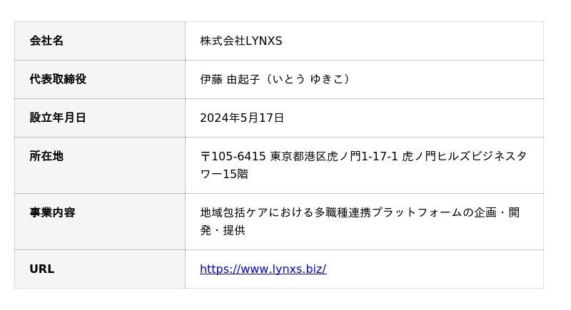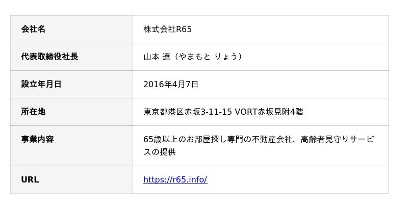 株式会社LYNXS(本社:東京都港区、代表取締役:伊藤由起子、以下「LYNXS」)と株式会社R65(本社:東京都港区、代表取締役社長:山本遼、以下「R65不動産」)は、高齢者の住まいの安全と地域包括ケアの充実を目的とした業務提携契約を締結いたしました。