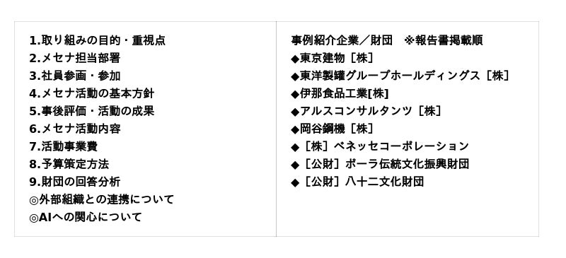 【2025年度メセナ活動実態調査報告書 『Mecenat Report 2025』 主な掲載内容】