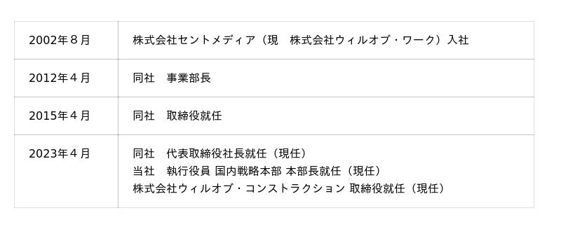 株式会社ウィルグループ(本社:東京都中野区、代表取締役社長:角 裕一)は、2026年2月25日(水)開催の取締役会において取締役候補者の選任について決議し、2026年6月開催予定の第20回定時株主総会の承認を経て、代表取締役社長 CEOおよび取締役 COOの設置を決定いたしましたのでお知らせします。