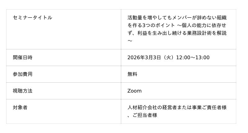 「活動量を増やしてもメンバーが辞めない組織を作る3つのポイント」を2026年3月3日(火)に開催いたします。