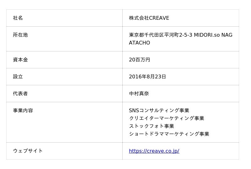 株式会社CREAVE 会社概要