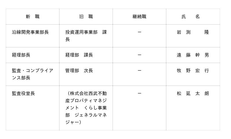 ※田嶋教央は、2026年4月1日付で株式会社西武不動産プロパティマネジメント監査役及び株式会社