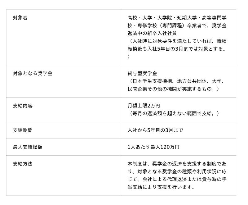こうした状況を踏まえ、若手社員の経済的負担の軽減と、安心して働き続けられる環境づくりを目的として、「奨学金返済支援制度」を導入いたします。