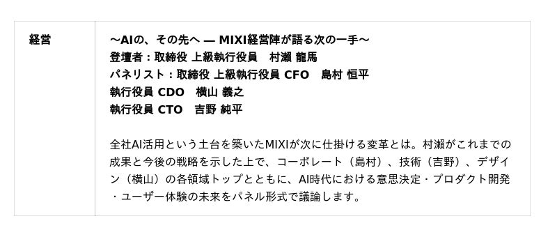 - イベント名:MIXI MEETUP!AI DAY 2026- 開催日時:2026年3月27日(金)