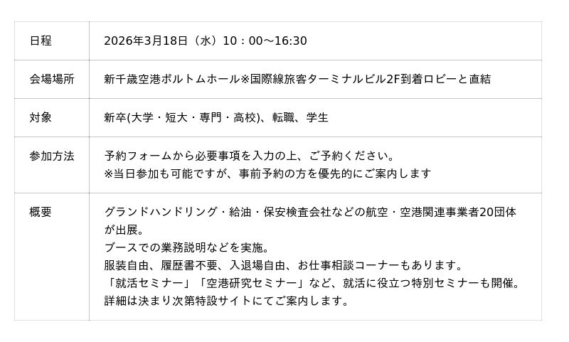 2026年3月18日開催 新千歳空港の合同企業説明会&業界研究の運営をサポート