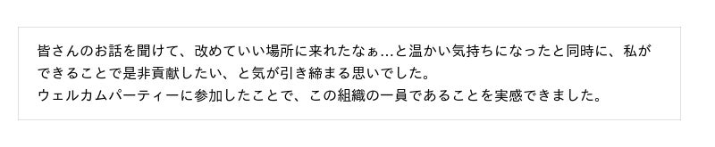 パーティーの締めくくりには、運営メンバーから「サポートする気満々のチームがついているので、何でも相談してほしい」という心強いエールが送られました。