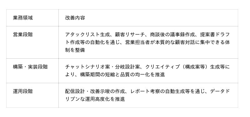 この改善により、業務生産性の向上と、提供品質の安定化を目指します。