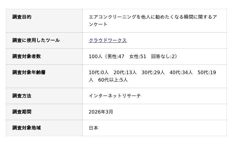 エアコンクリーニングを他人に勧めたくなる瞬間に関するアンケート調査の概要