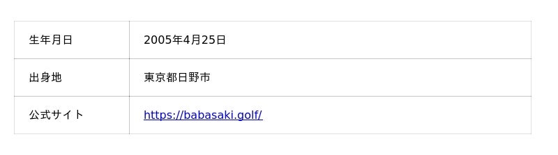 プロゴルファー 馬場咲希