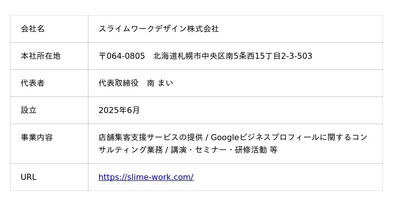 スライムワークデザイン株式会社(北海道札幌市中央区、代表取締役:南 まい、URL: