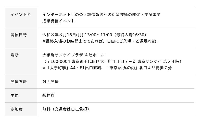 「インターネット上の偽・誤情報等への対策技術の開発・実証事業 成果発信イベント」の開催