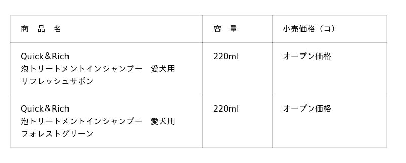 ペット用プレミアムボディケアシリーズ『Quick&Rich』から待望の泡タイプ『Quick&Rich泡トリートメントインシャンプー 愛犬用』新発売