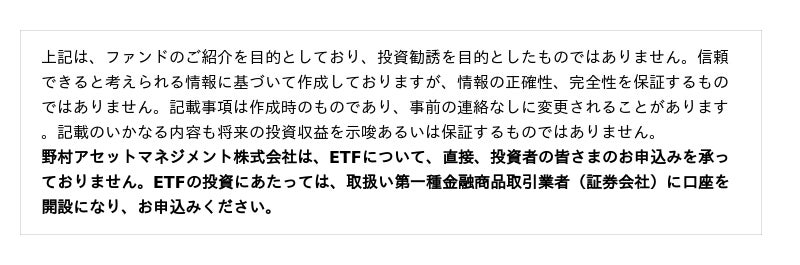 本ETFの詳細については当社ホームページをご参照ください。