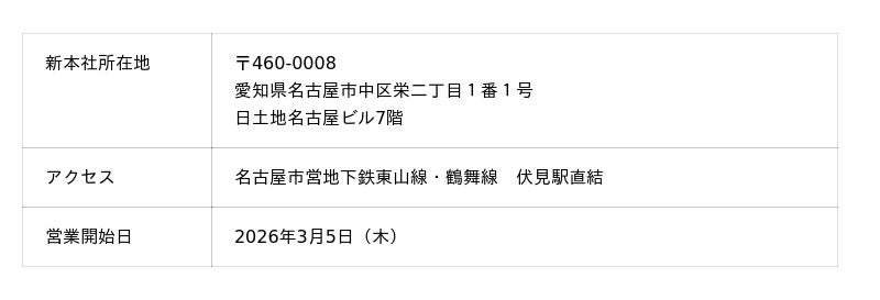 所在地 :愛知県名古屋市中区栄二丁目1番1号 日土地名古屋ビル7階