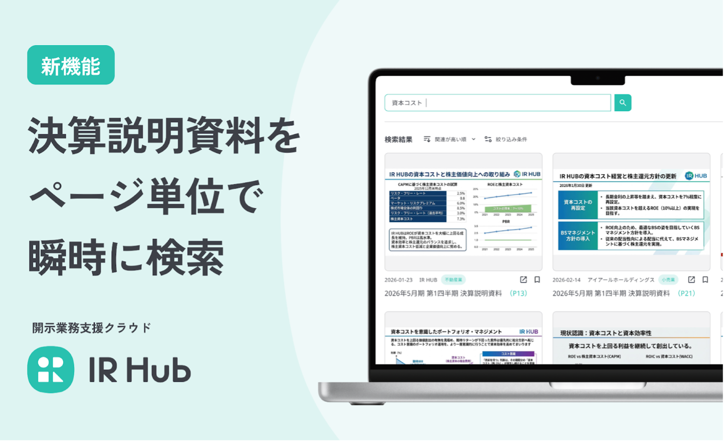 開示業務支援クラウド「IR Hub」にて、新機能「スライド検索」が登場