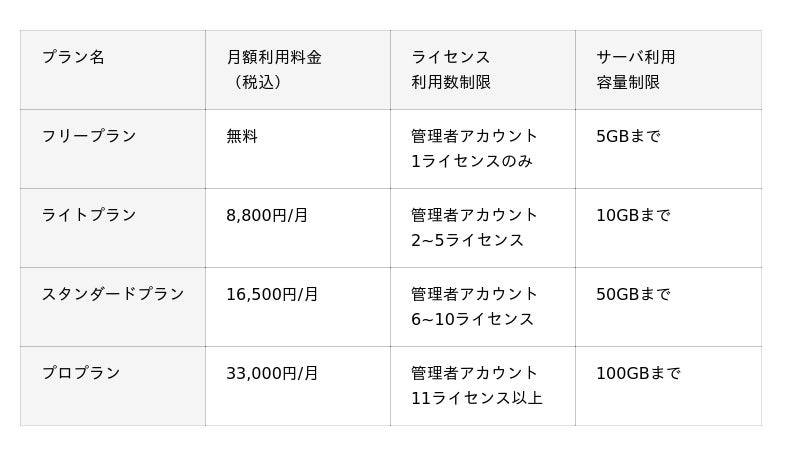 ※サーバ利用容量制限を超えてご使用いただく場合、10GB毎に税込880円/月にて追加いただけます。