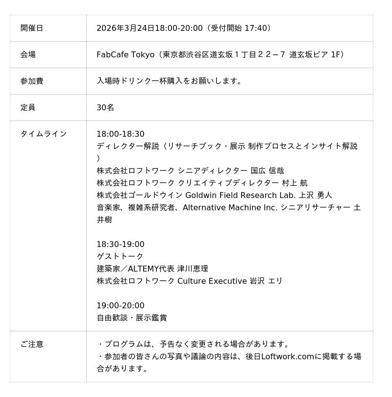 3月24日(火)にFabCafe Tokyoで刊行・展示記念トークイベント開催