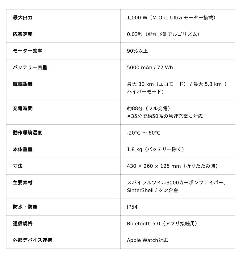 内蔵された10個以上の高精度センサーが毎秒数万回の演算を行い、ユーザーの動きの意図をリアルタイムで予測。独自の「AI Motion Engine Ultra」が最適な出力を瞬時に判断し、あらゆる利用シーンで「絶妙なアシスト」を提供します。
