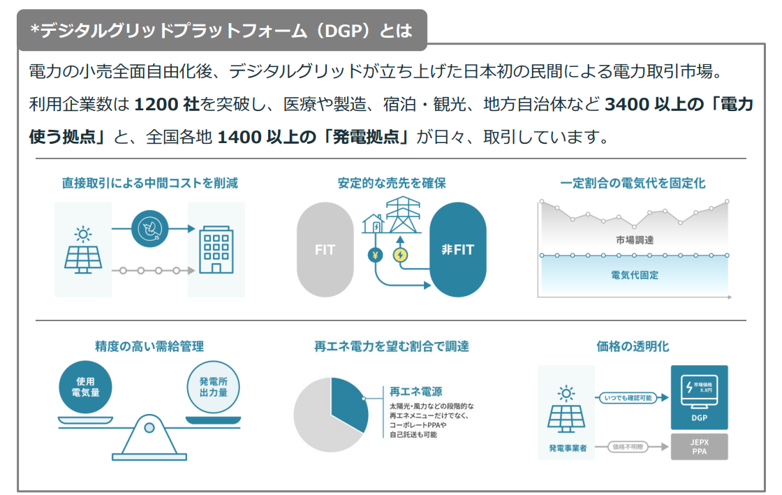 事業内容:電力及び環境価値取引プラットフォーム「DGP」運営、分散型電源アグリゲーションサービスの提供