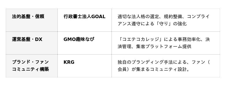 本提携により、資格ビジネスやコミュニティ運営を行う協会・団体に対し、法的な設立支援から社会的信頼の獲得、運営のDX化までを包括的にサポートする体制を確立します。