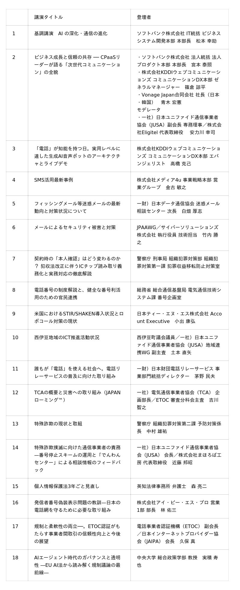 通信業界のトッププレイヤーや専門家が集まり、AIから犯罪対策まで多岐にわたるテーマを議論